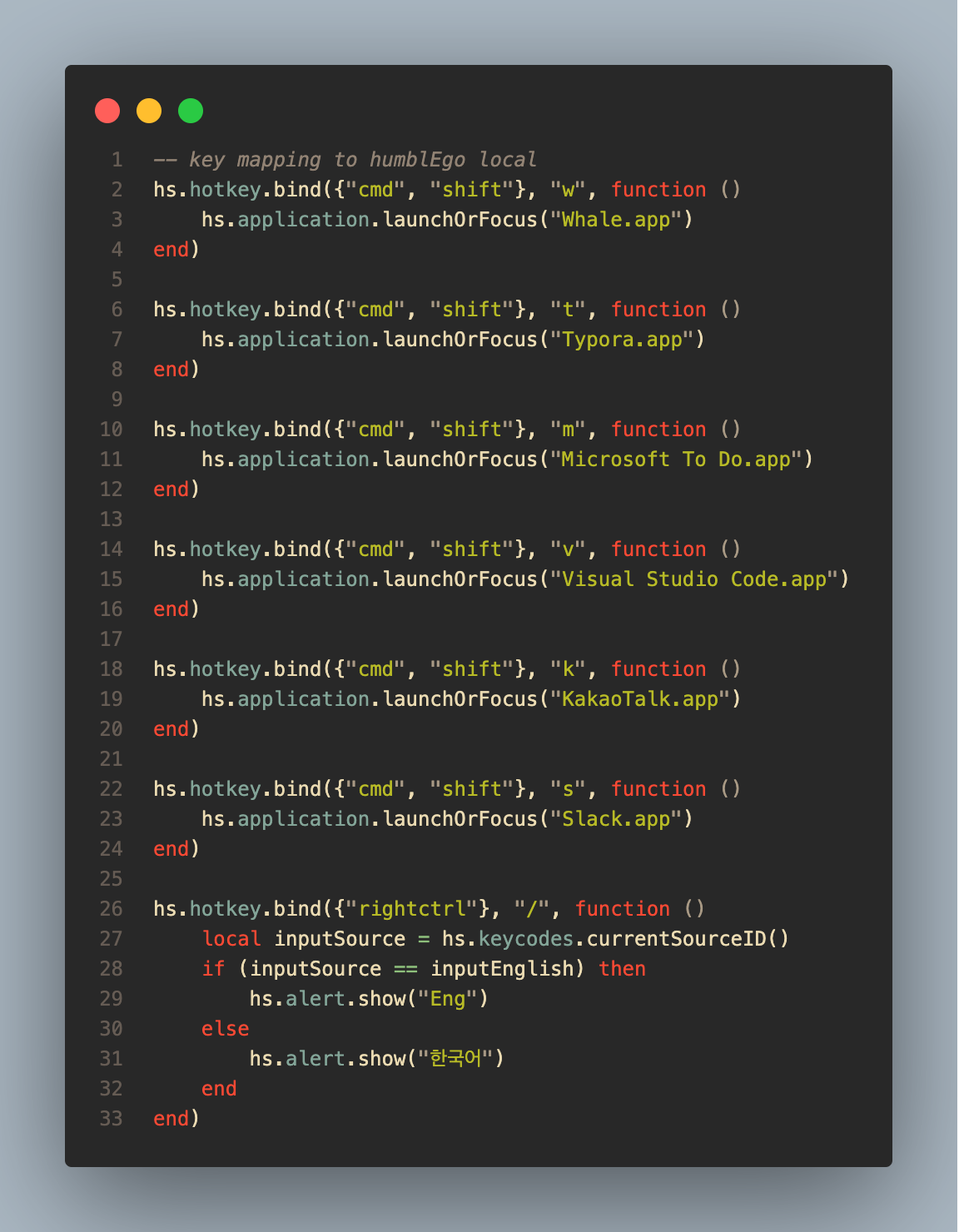 구체적으로 hammerspoon을 활용한 과정은 아래와 같습니다.