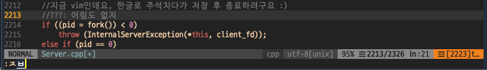 우리가 이 사실을 모르지 않는데 한글커맨드를 입력한 이유는 또 뭘까요? Normal mode로 진입할 때 입력소스를 영어로 변환하는 것을 깜빡했기 때문입니다.